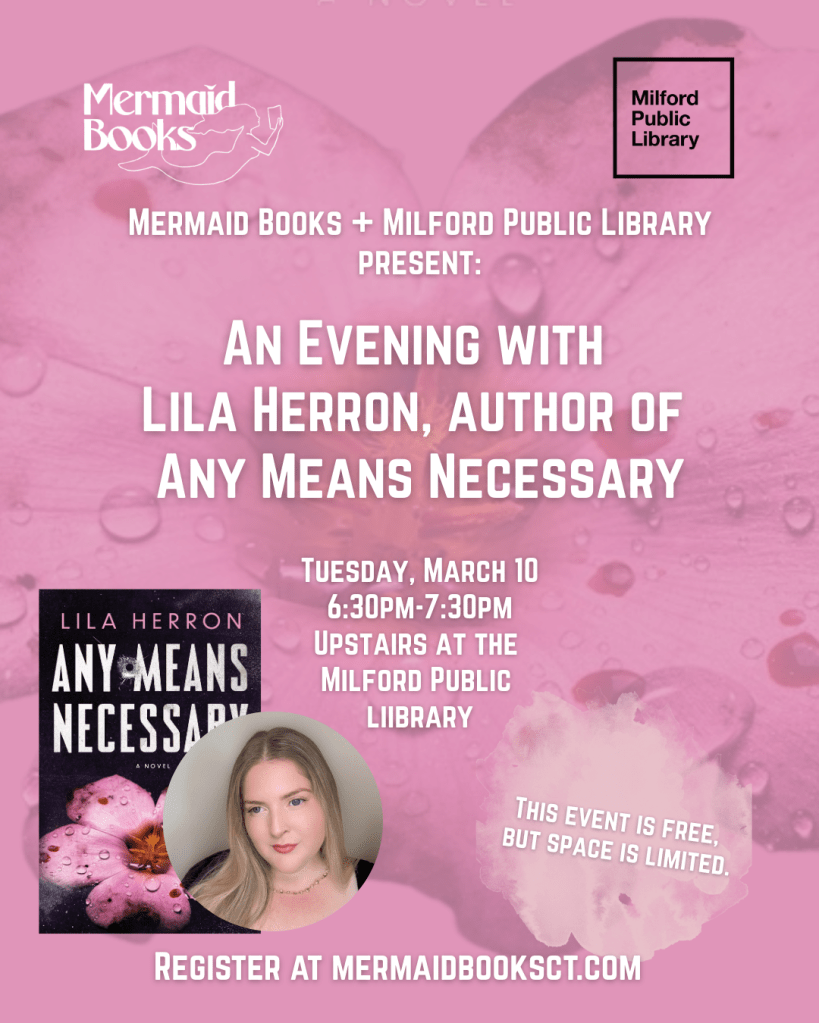 Join us with our partners at Milford Public Library as we host Lila Herron, who will appear in conversation with the leaders of Mermaid Books’ romance book club: Rachel Bauer (@professorrachelreads) and Amie Abraham (@amie__abraham). Book signing to follow.