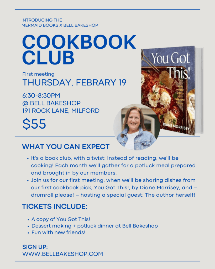 Join us for our first meeting on February 19, from 6:30 to 8:30pm, when we’ll be sharing dishes from our first cookbook pick, You Got This!, by Diane Morrisey, and hosting a special guest: The author herself!